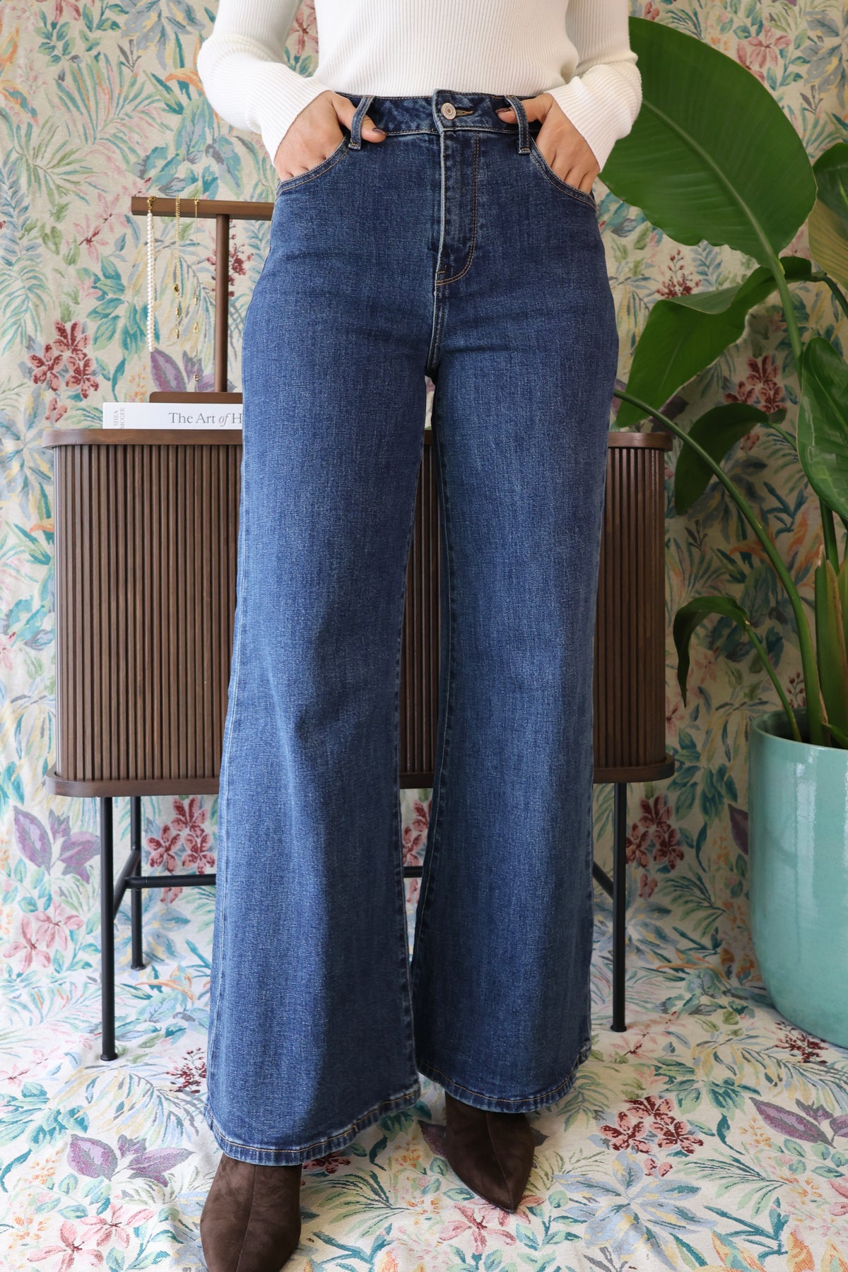 Jeans palazzo com 5 bolsos