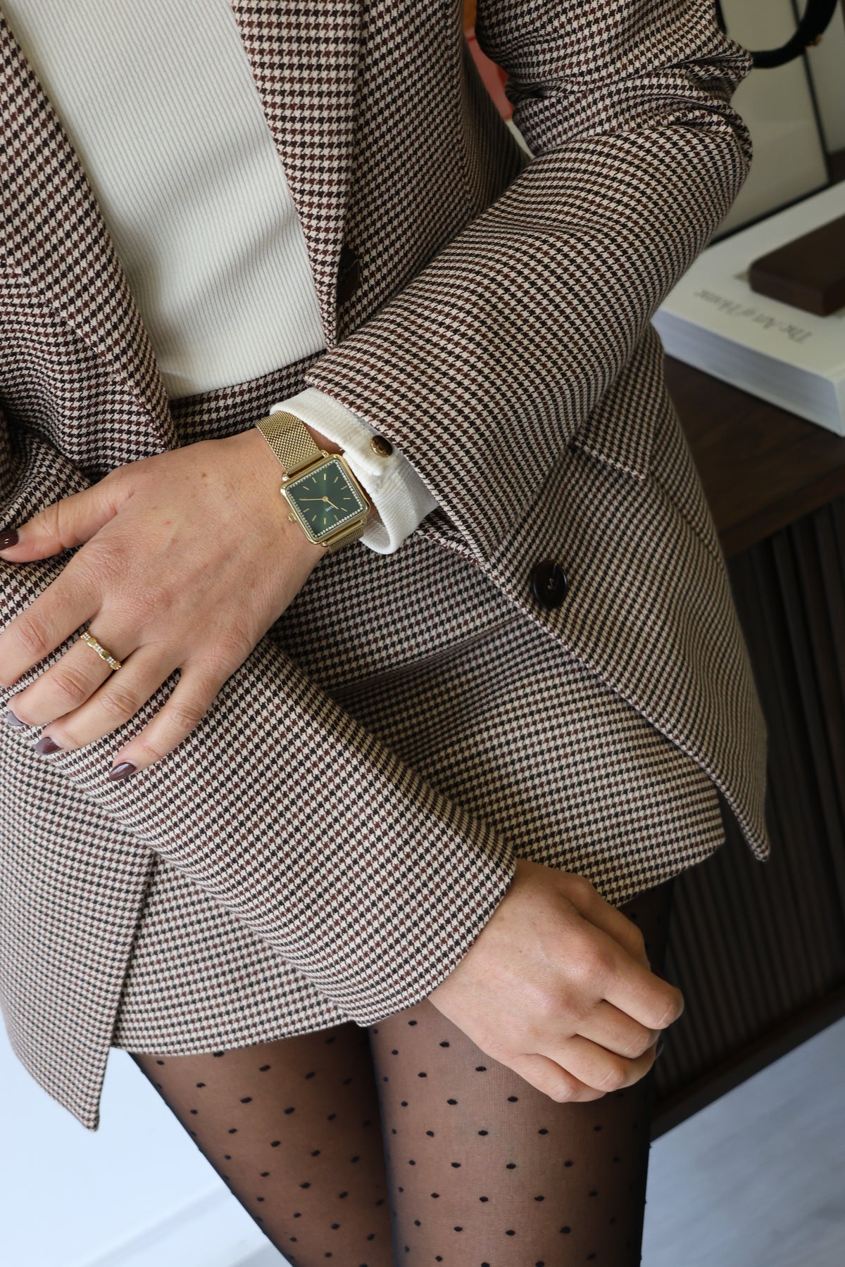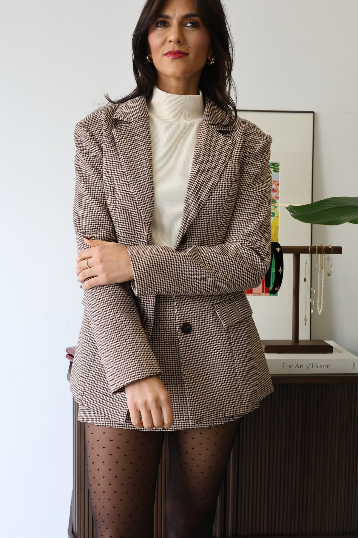 Blazer com ombreiras, bolsos frontais, forrado por dentro e padrão pata de galo, Coleção Fall-Winter25.