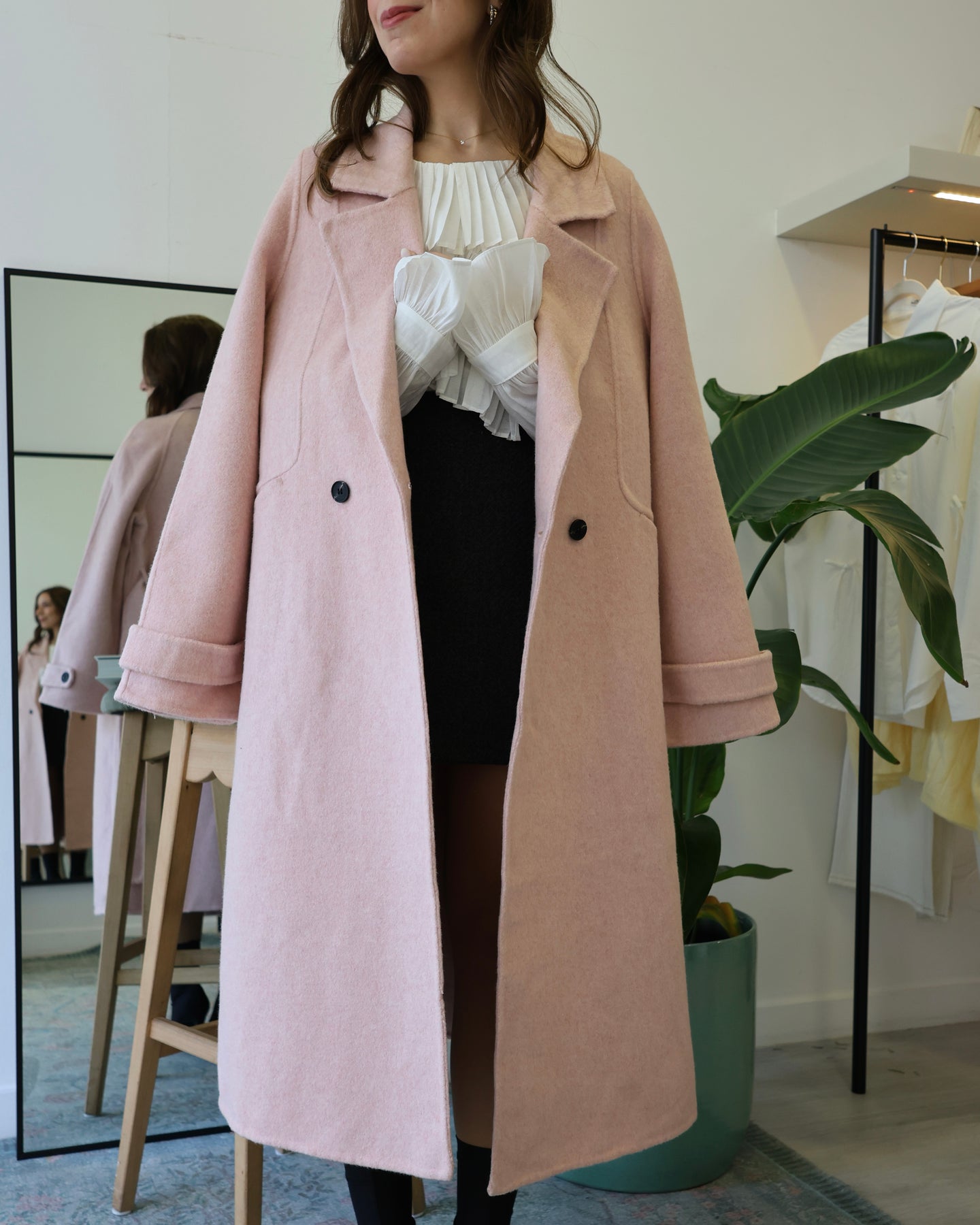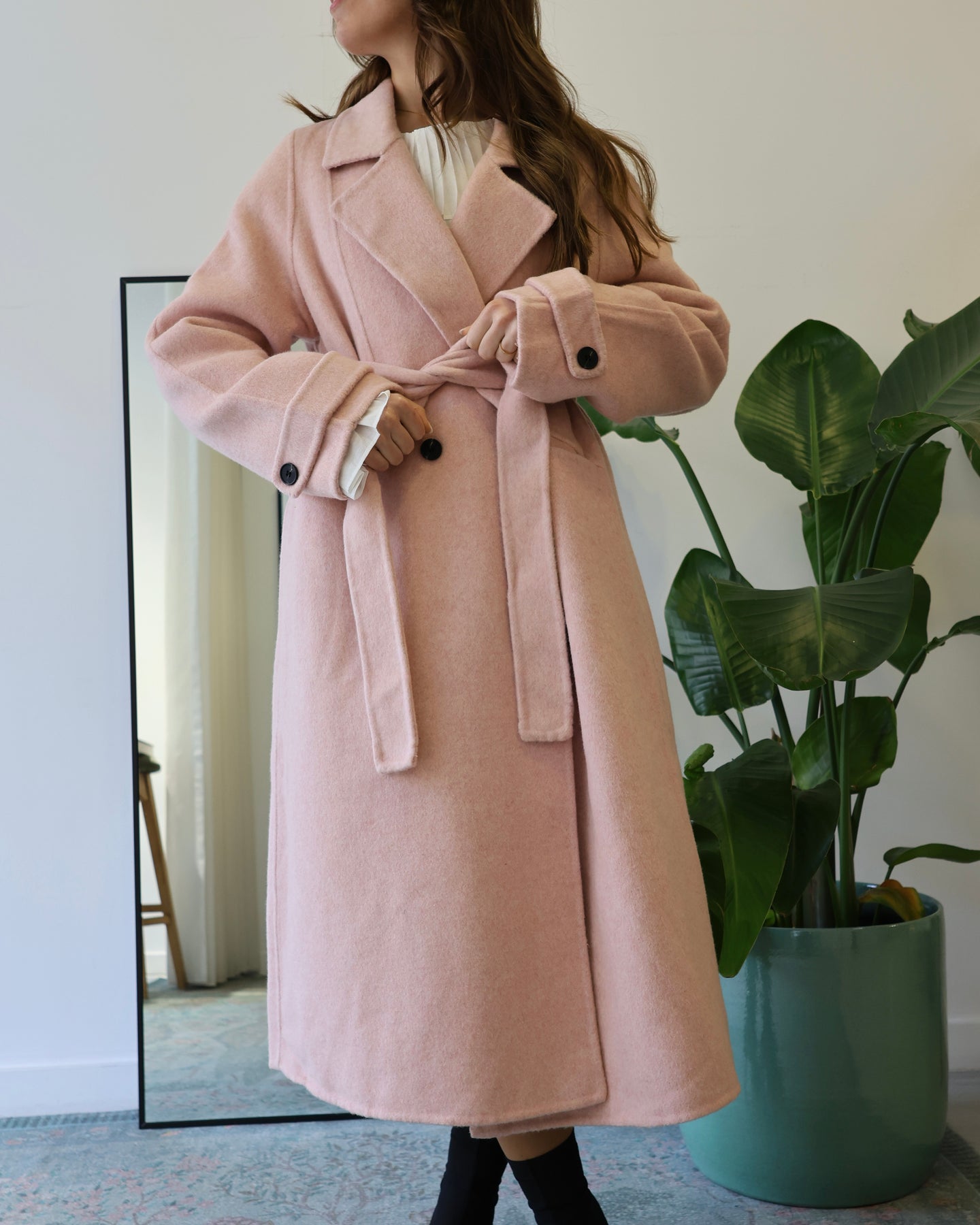 Sobretudo longo, composto por lã, alta quantidade, bolsos frontais, cinto para amarrar na cintura, muito quentinho, Coleção Fall-Winter25.