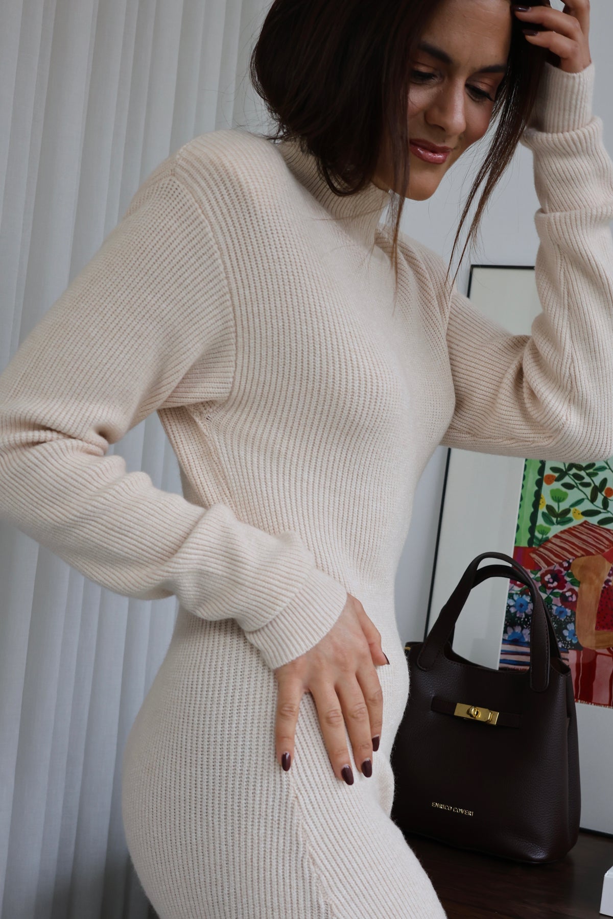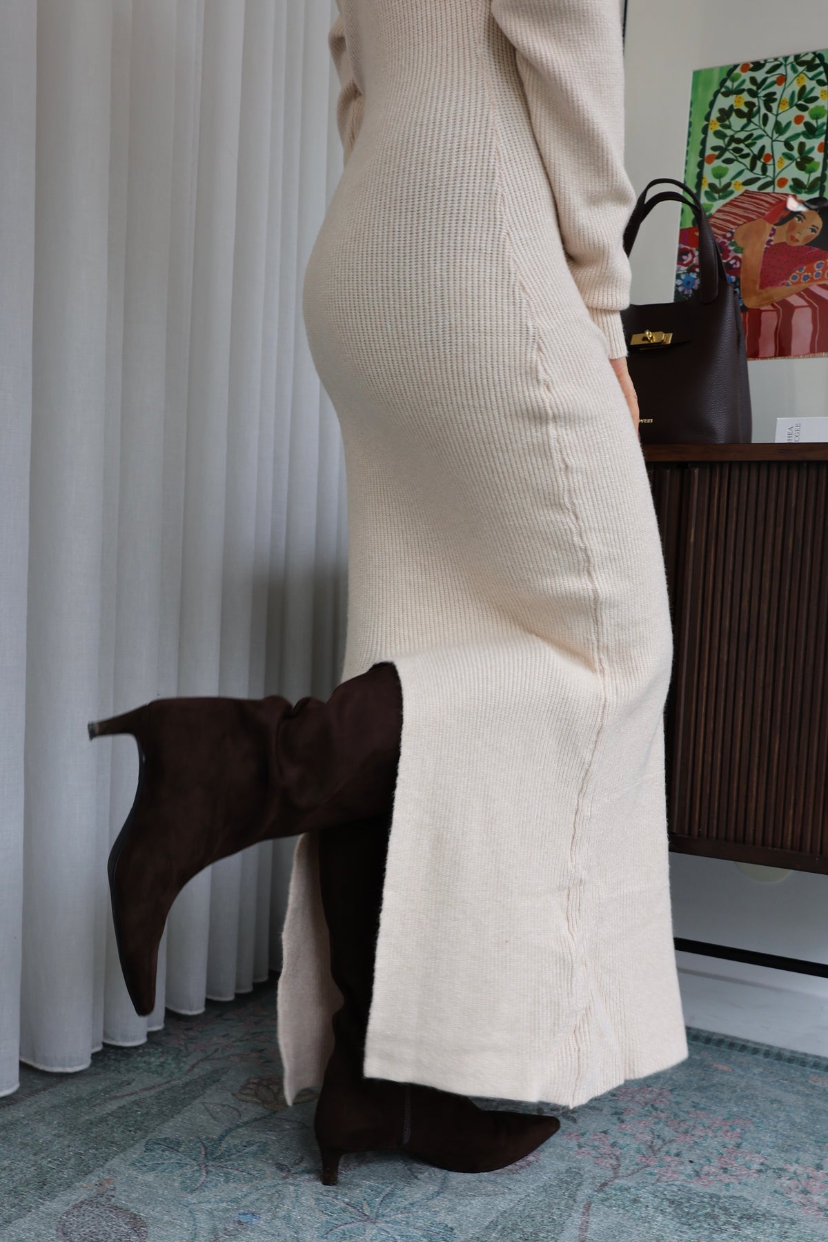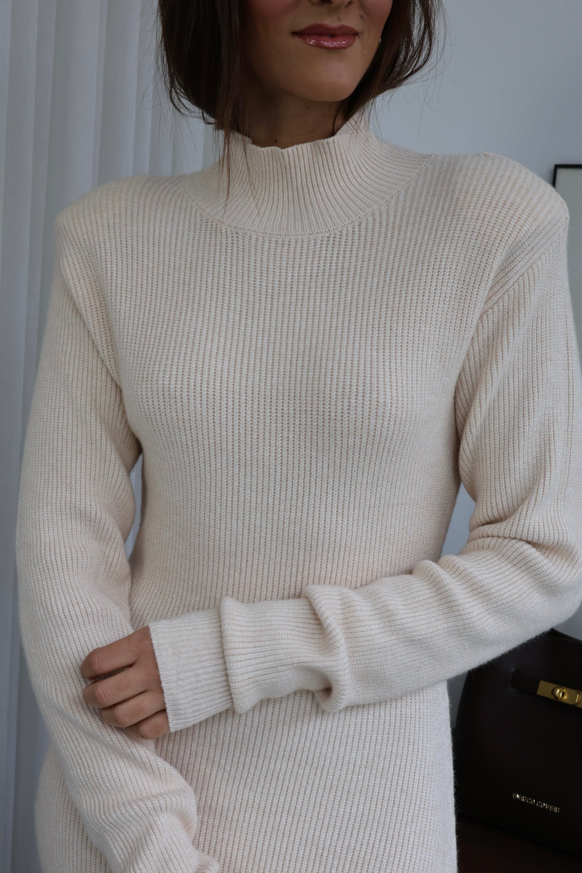 Vestido longo em malha canelada com ombreiras e pequena racha atrás, é só maravilhoso. Nova Coleção Fall - Winter 25.