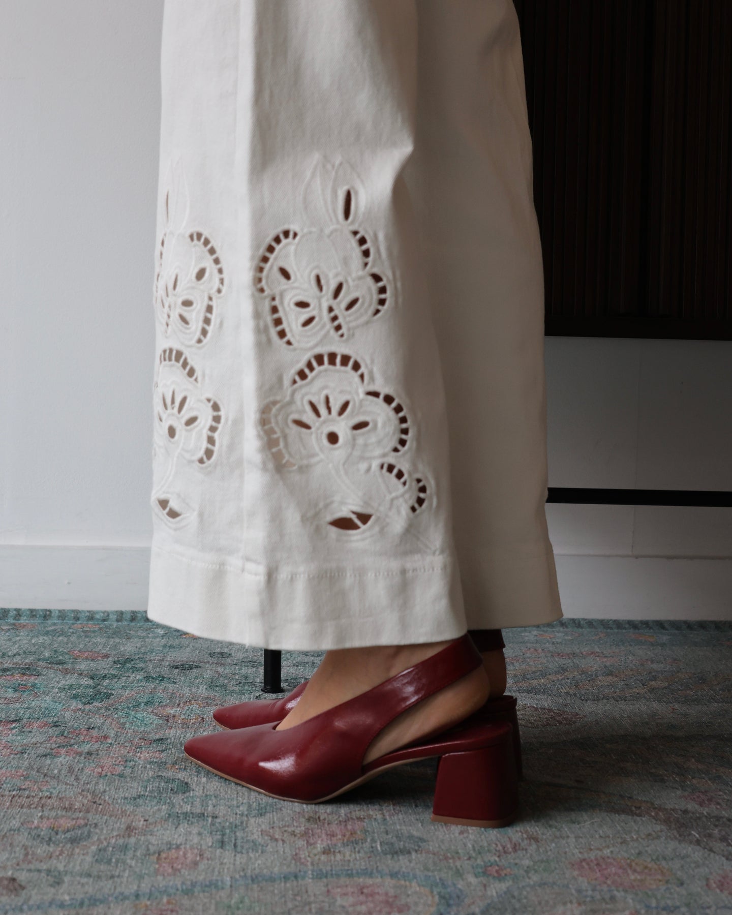 Wide- leg jeans with embroidered details on the leg, high waist. Spring 2026 Collection.