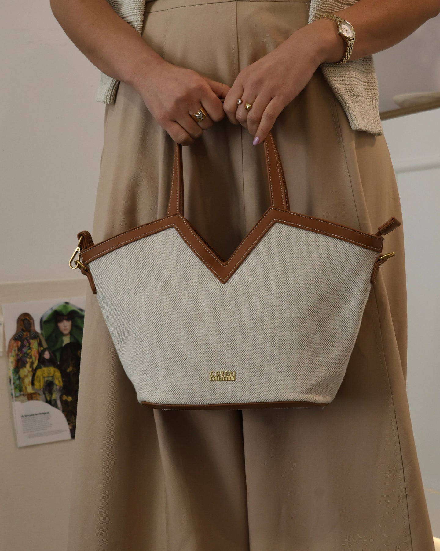 Bolso de mano/bandolera con correa bandolera, cierre metálico en tono dorado, Nueva Colección Primavera 26.
