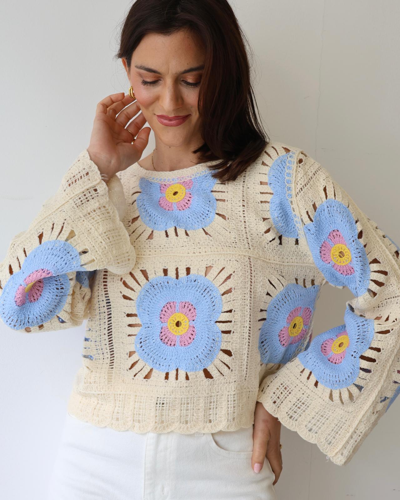 Suéter de punto con corazones dorados, tejido ligero y fluido. Colección Primavera 2026.