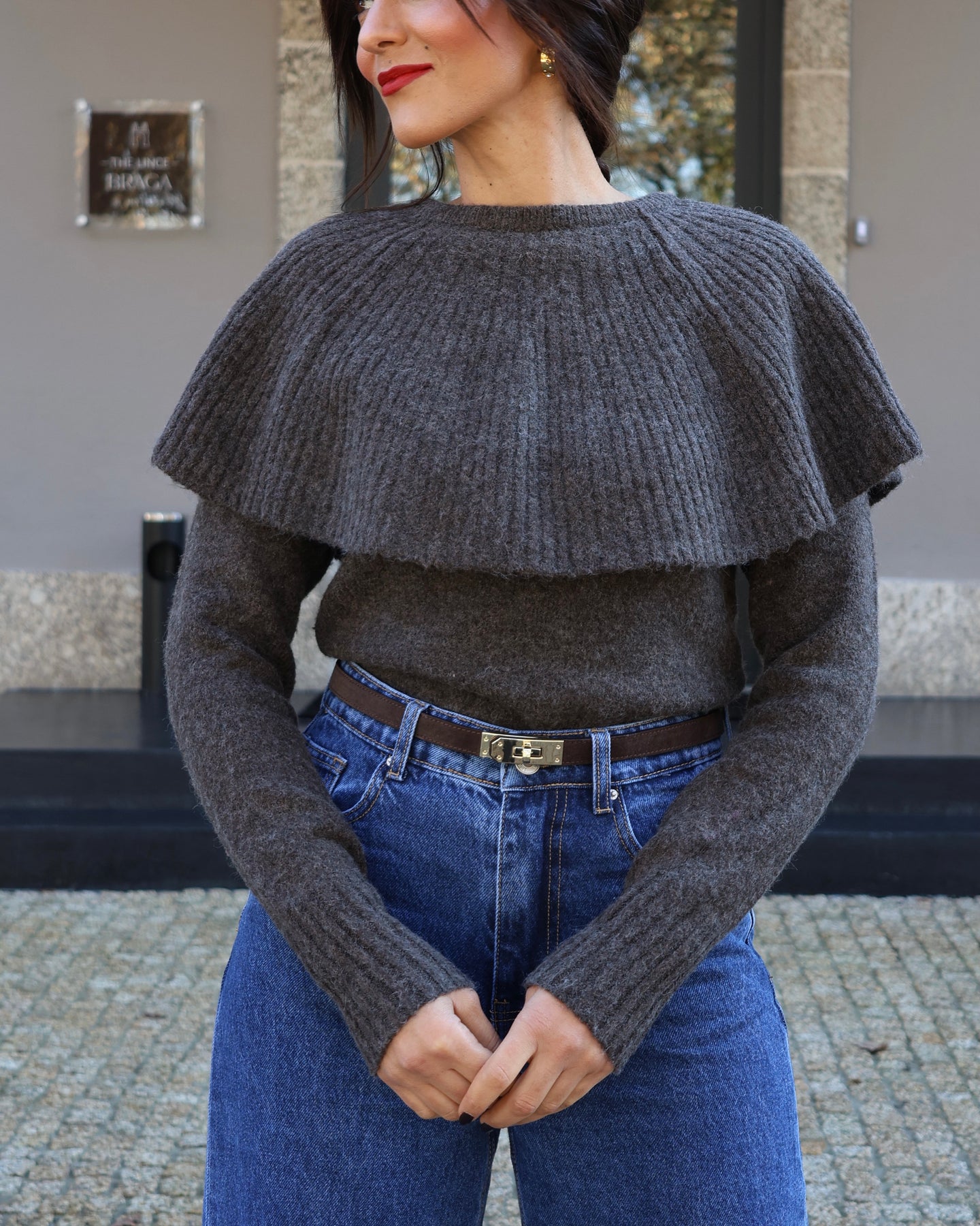 Descripción del producto. Camisa de manga larga en tejido de punto con cuello redondo, colección Otoño-Invierno 25.