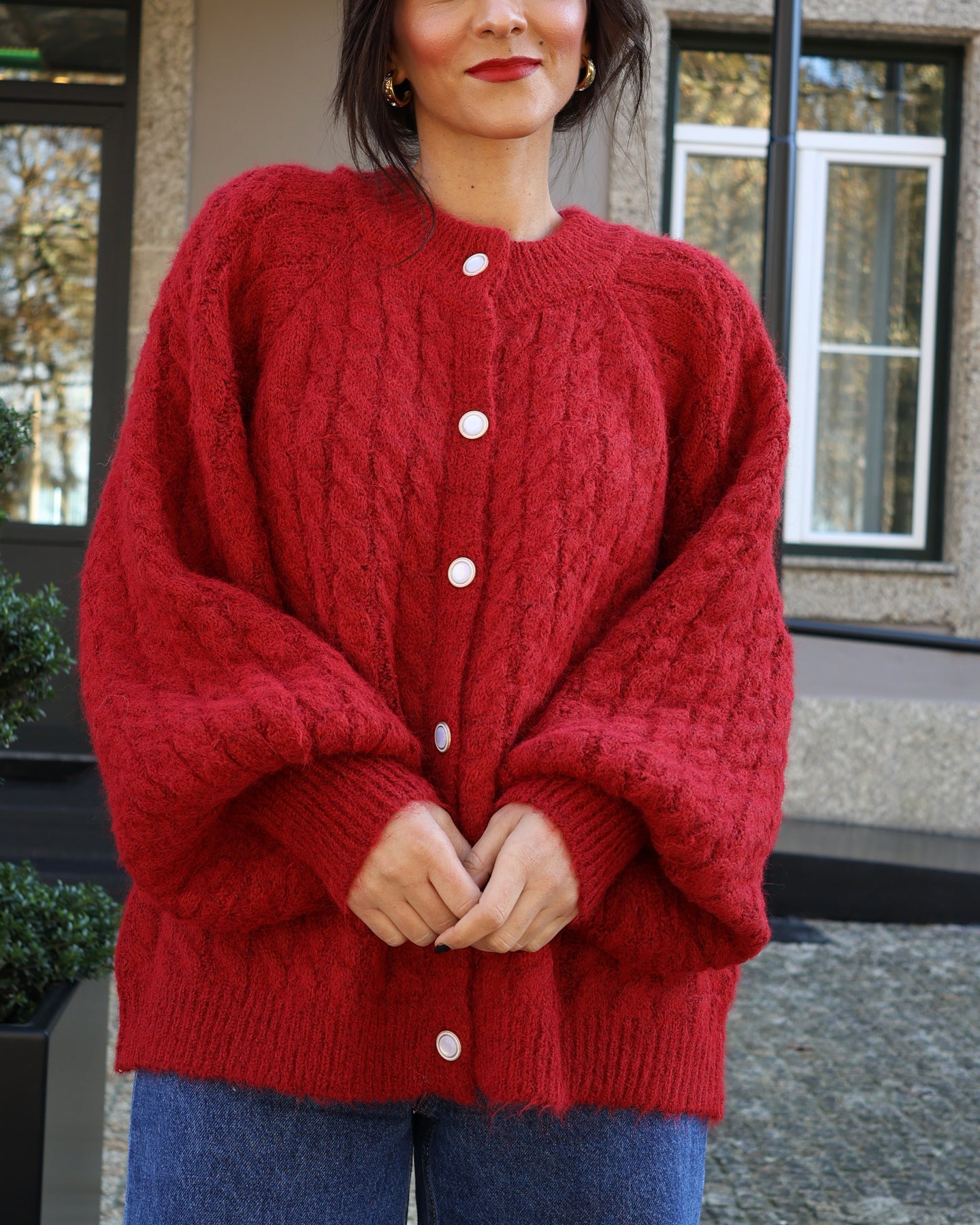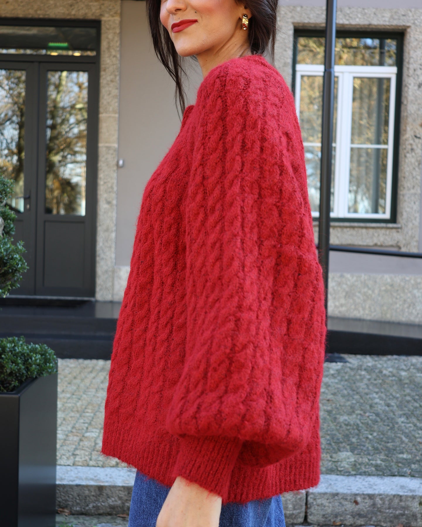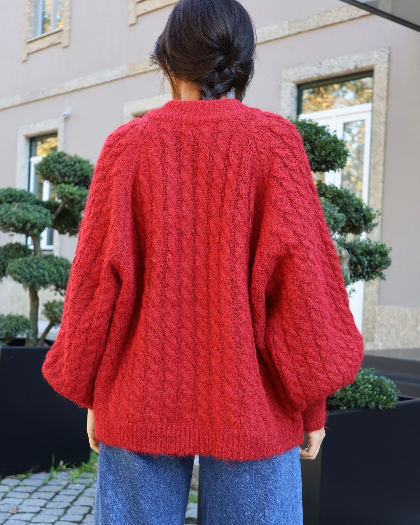 Descrição do produto. Casaco em malha entrançado largo Coleção Fall-Winter25.