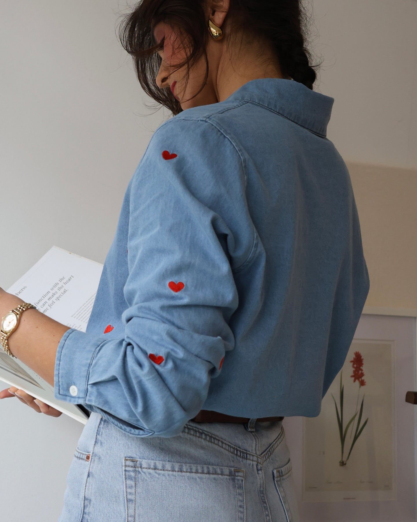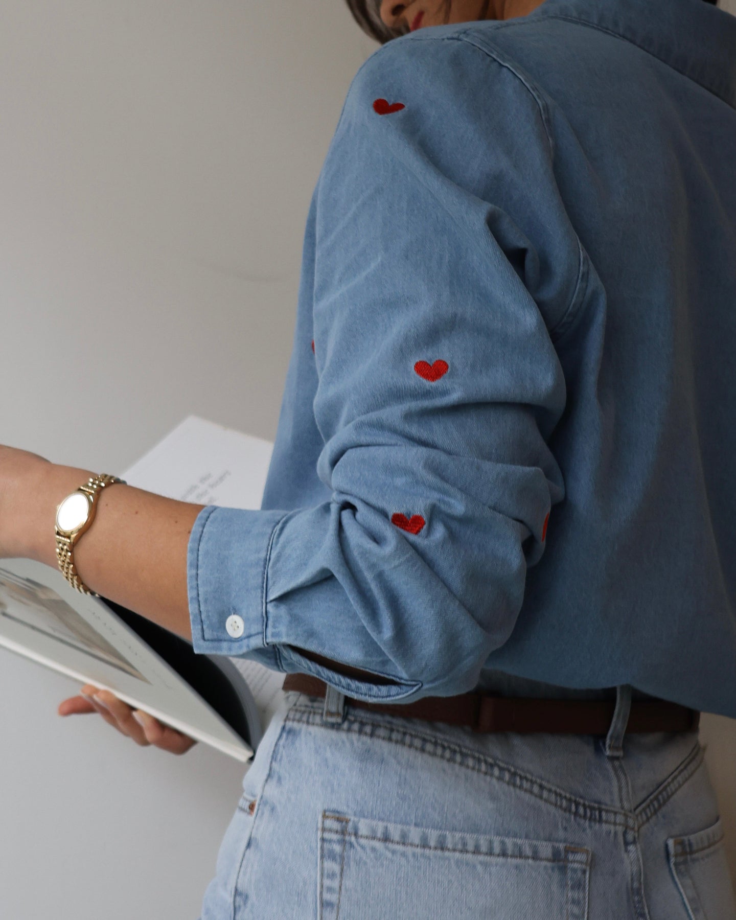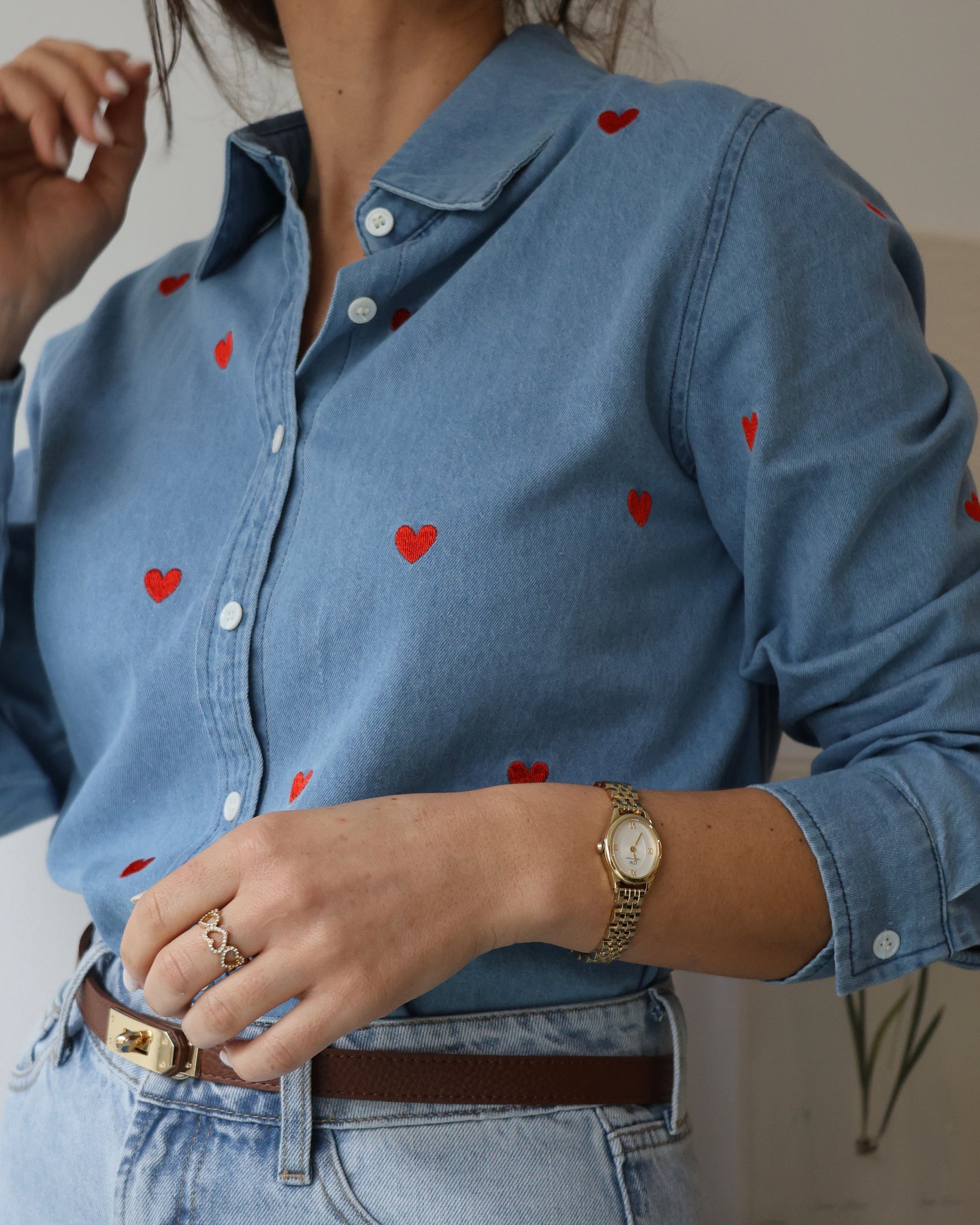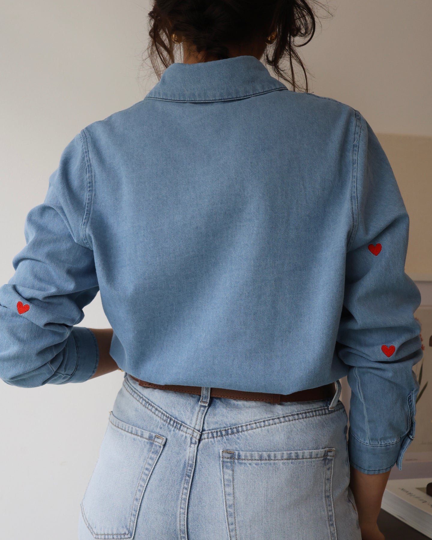 Camisa vaquera con corazones bordados. Colección Primavera 2026.
