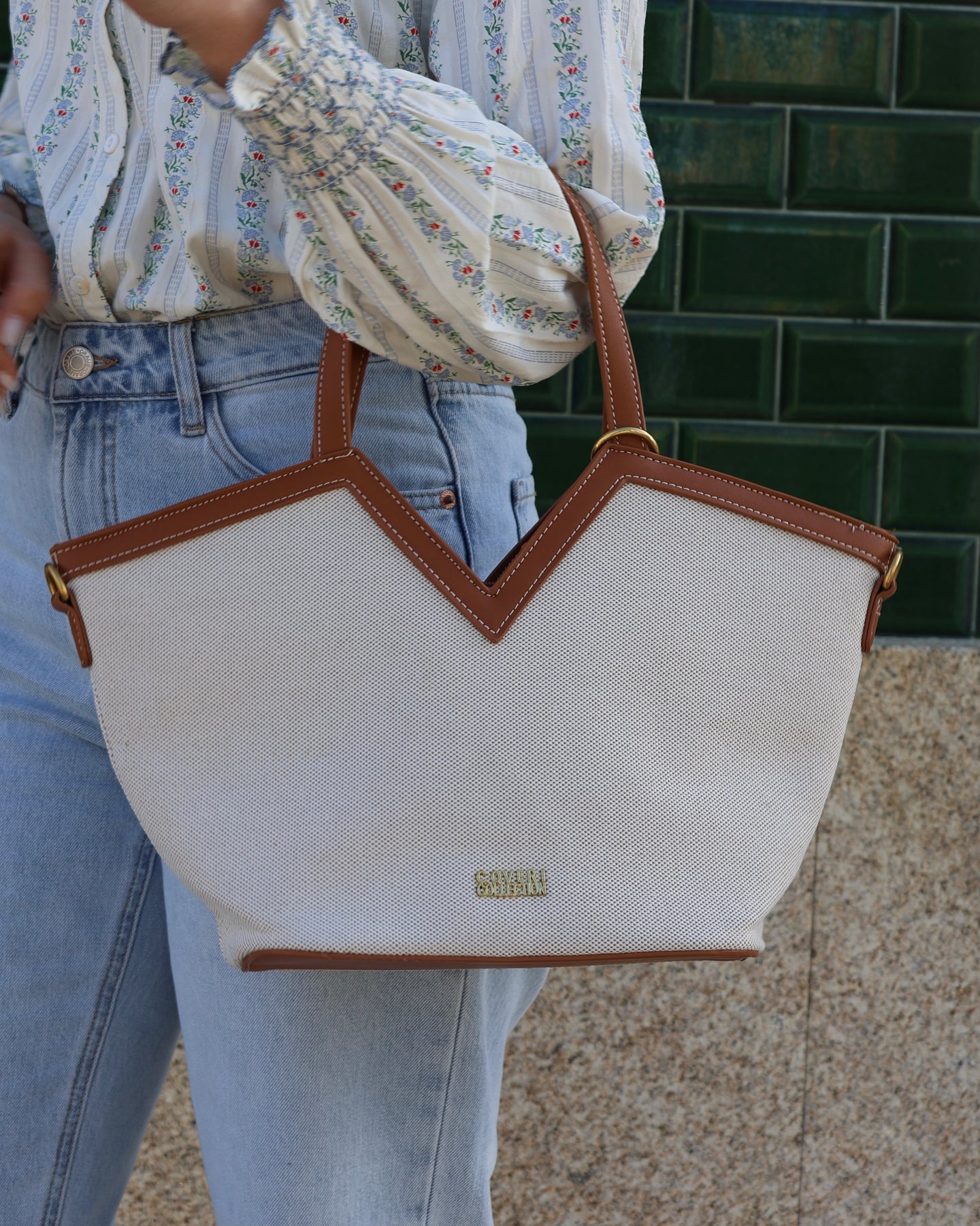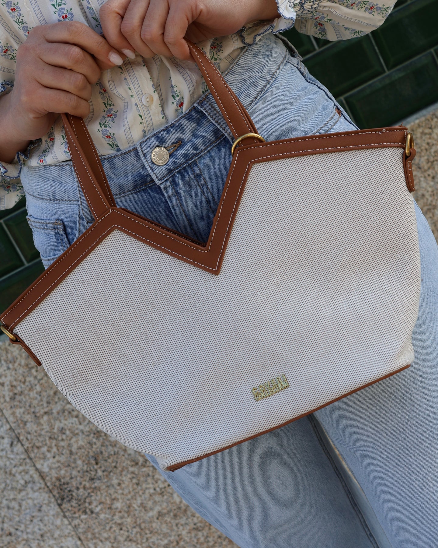Bolsa estruturada, com alça tiracolo, tecido texturizado, acabamentos em material sintético, pingente decorativo, Coleção Primavera 2026.